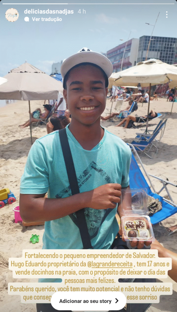 Sou Hugo Eduardo, fundador da La Grande Receita™. Comecei vendendo brigadeiros aos 17 anos e, em poucas horas por dia, transformava R$30 em R$140, faturando mais de R$2.200 por mês trabalhando apenas 4 dias por semana.